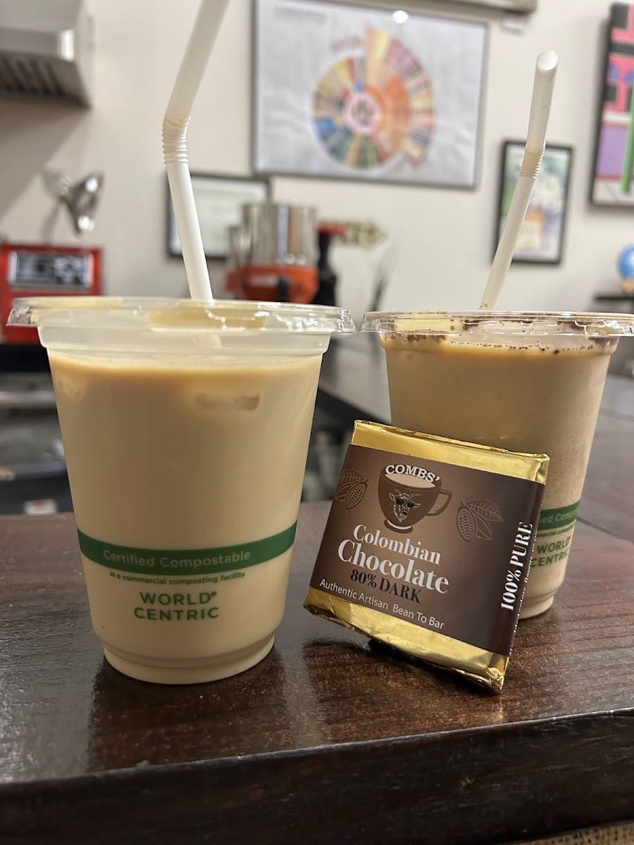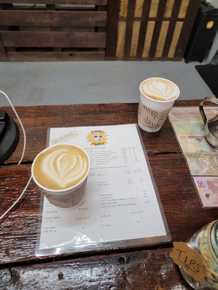 Follow the signs to find this special gem tucked away. We stopped on our way back home after visiting town and plan to be back! You can buy the beans which contain all the information about that particular coffee including the grading. I had the drip and it is one of the best cups of coffee I had tried. Not bitter in the slightest and you can really taste the beans. I would have asked for it black had I known. My partner got the spunky monkey which was surprisingly delicious and refreshing. What a cool place!